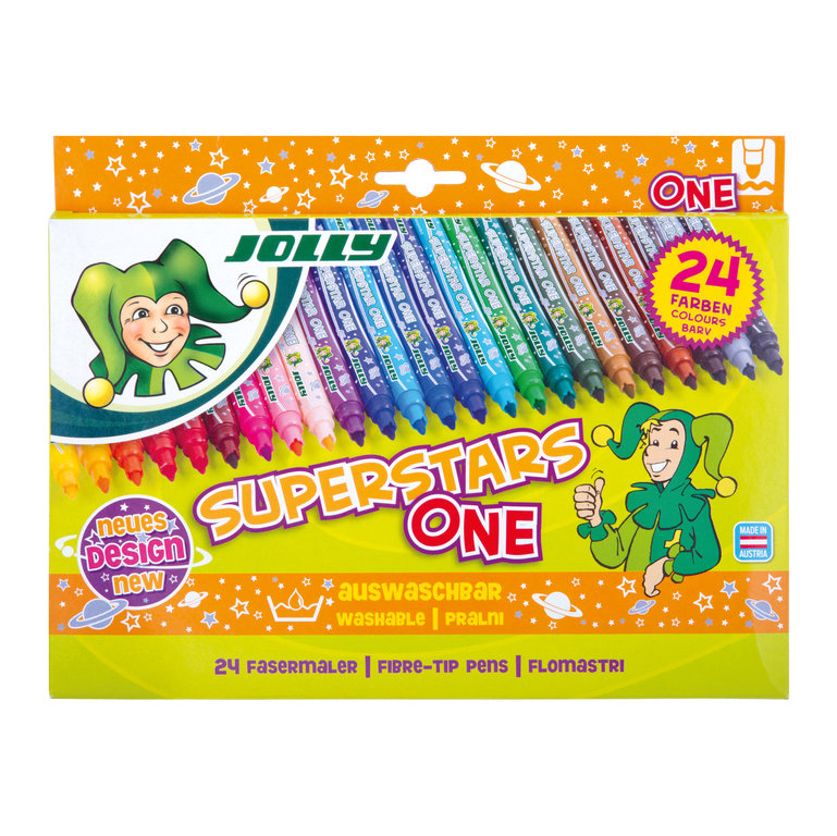 Superstar ist der Superstar unter den Fasermalern. Leuchtende und satte Farben sowie die dicke Mine garantieren höchsten Zeichenspaß. Die auswaschbare Tinte hilft bei der Beseitigung von kleinen Malheurs. Superstars gibt es auch als DUO, mit dicker und dünner Spitze und sogar in Neon- und Metallicfarben.