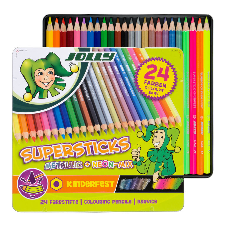 Jolly Supersticks sind die bewährten Buntstifte aus dem Haus Jolly. Bestimmt haben auch Sie als Kind schon damit gemalt! Die bruchsichere Mine, satte Farben und die Qualität der österreichischen Produktion sorgen für leuchtenden Malspaß!