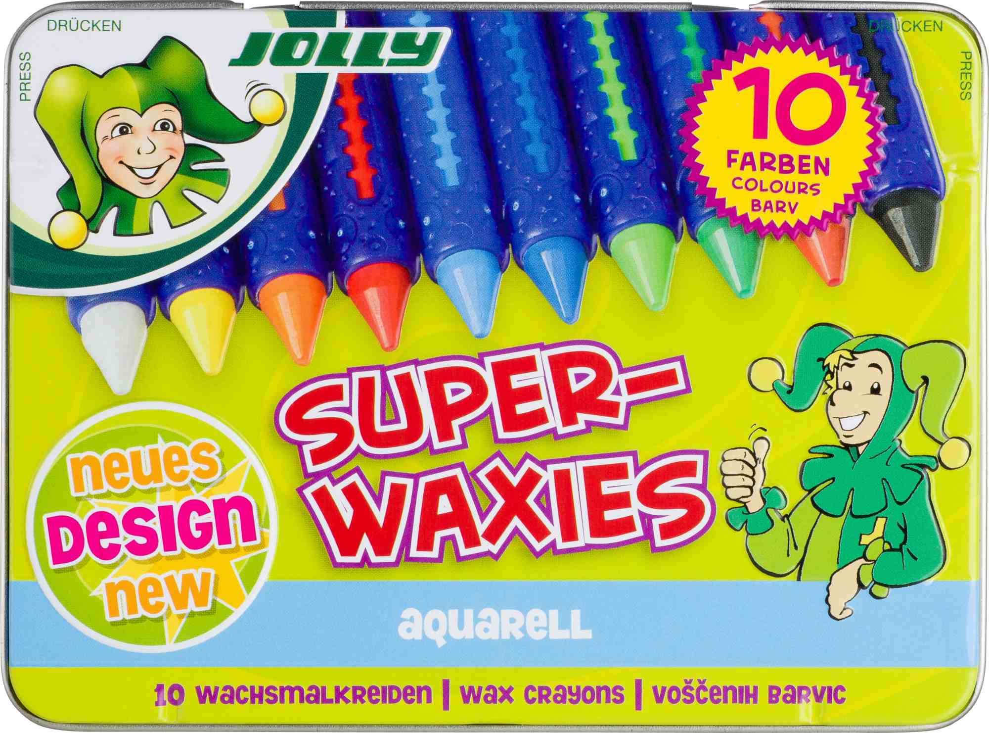Wachsmalkreiden Superwaxies Aqua liegen besonders gut in der Hand. Mit dem Schuber lässt sich die Kreide einfach nachschieben. So bleiben die Finger immer sauber! Superwaxies Aqua sind mit Wasser vermalbar. So entstehen coole Aquarell-Effekte!