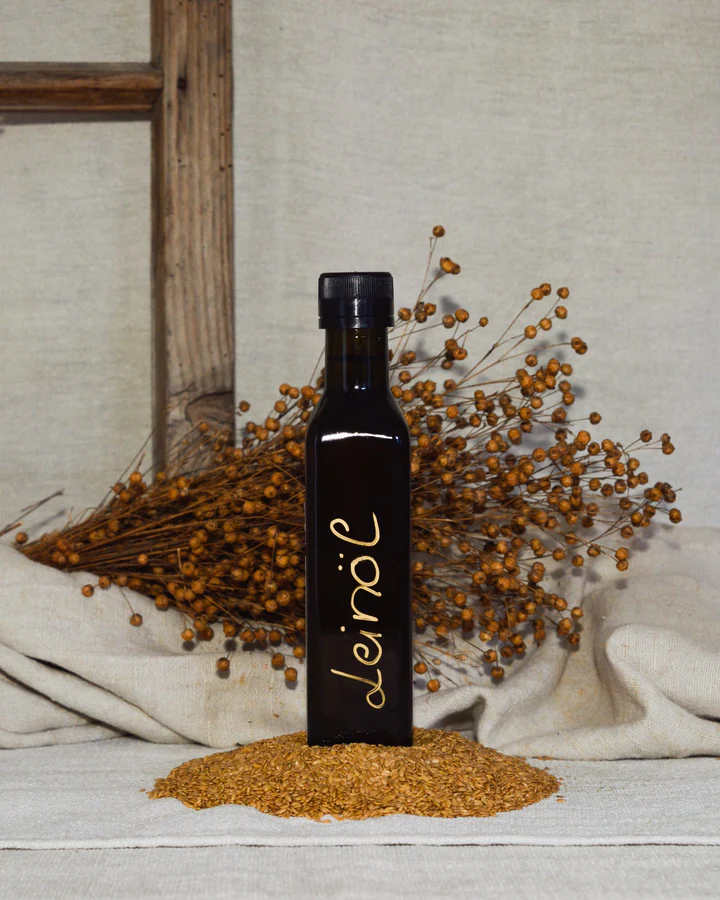 Von Anbau über Pressen bis zum Abfüllen geschieht alles bei uns auf dem Hof, dadurch können wir die ausgezeichnete Qualität unseres Leinöls garantieren. Dafür erhalten wir regelmäßig Auszeichnungen z.B. letztes Jahr Bronze bei der Wieselburger Ölprämierung “Öl-Kaiser 2023”!