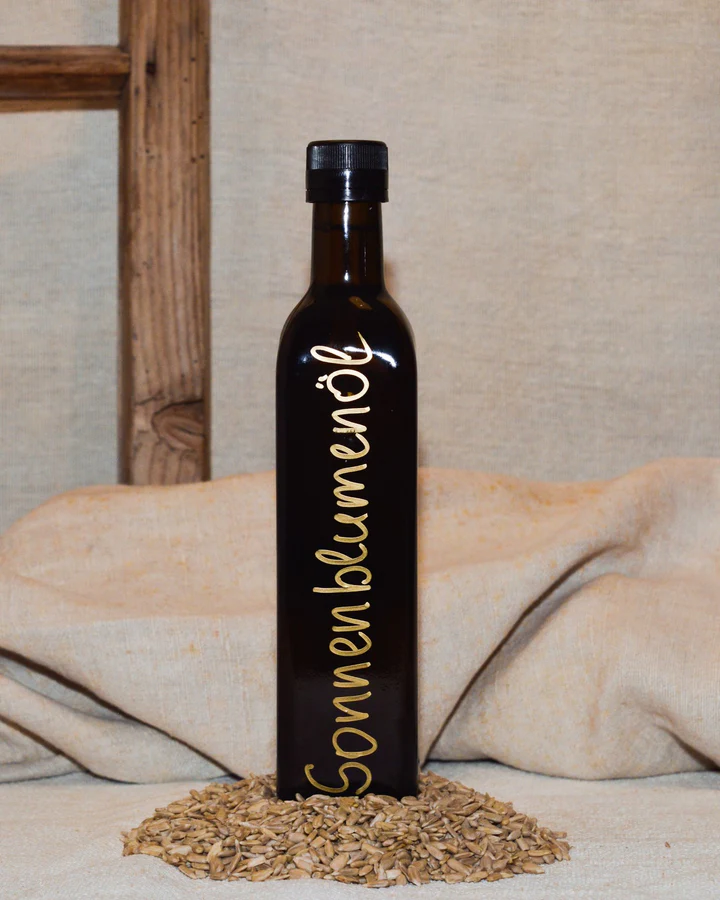 Das Öl wird schonend aus gerösteten Sonnenblumenkernen gepresst und dann nativ, also ohne weitere Behandlung oder Denaturierung, abgefüllt.