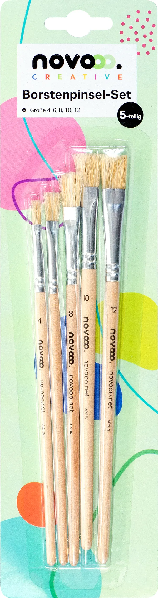 NOVOOO CREATIVE Borstenpinselset 5 Stück verschiedene Größen natur