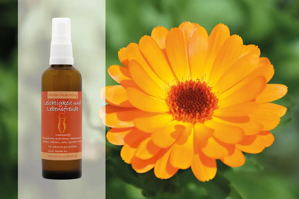 Die Ringelblume (Calendula Officinalis) wirkt beruhigend und stimmungsaufhellend, das warme Orange hebt das Gemüt und löst emotionale Verspannungen. Sie zaubert die Sonne ins Gesicht, löst Verkrampfungen in Gedanken und Gefühlen, man wird lockerer und die Lebensenergien können wieder frei fließen. Sorgen lösen sich auf und wohlige Wärme breitet sich aus. Außerdem stärkt sie dabei die Fähigkeit, sich auf allen Ebenen positiv mitzuteilen.