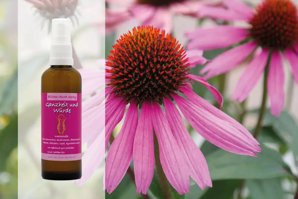 Der Rote Sonnenhut (Echinacea Purpurea) wirkt besonders, wenn der Mensch zerrüttende oder zerstörerische Kräfte erfahren hat wie Isolation, Schmerz, Verletzung, Trauer oder Verlust. Er unterstützt trotz Herausforderungen wieder die richtige Beziehung zu sich selbst zu finden, besonders dann, wenn innerhalb der Familie oder Gesellschaft der nötige Halt fehlt. Er fördert das Wachstum nach Innen und erlaubt wieder einen Blick auf das große Ganze.
