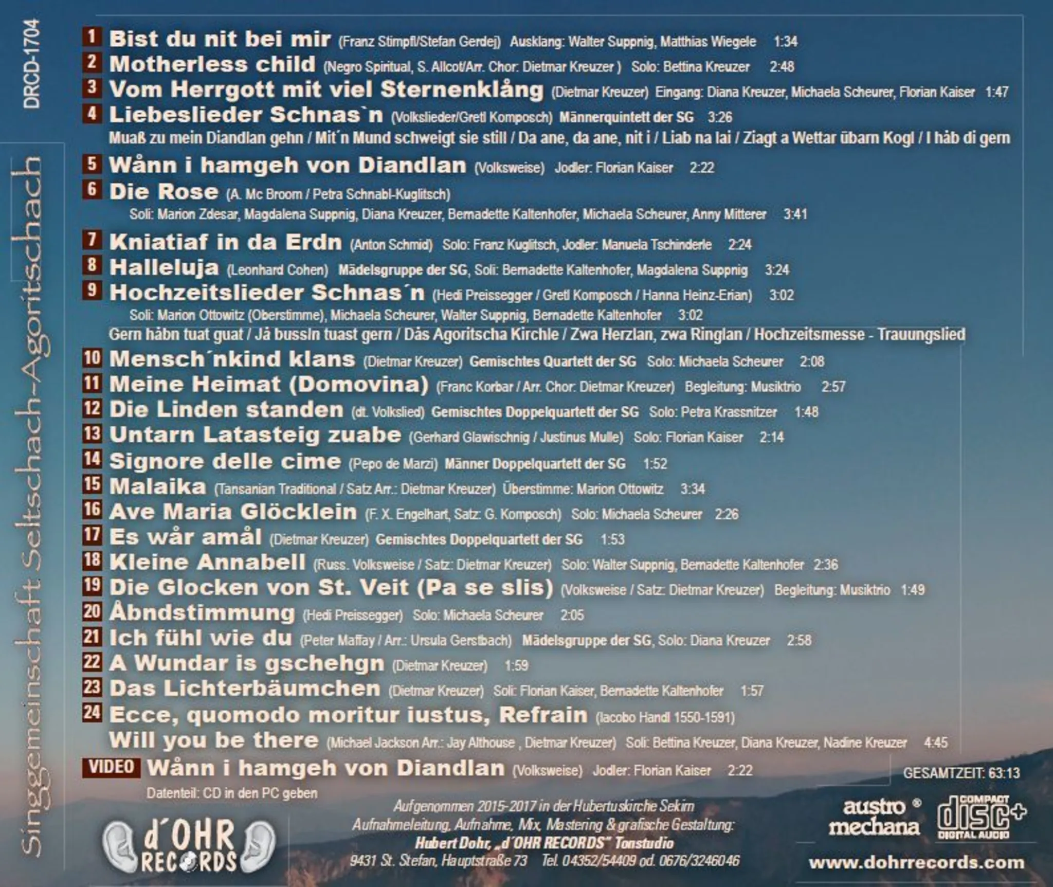 CD – 20 Jahre SG Seltschach Agoritschach – “…und Frieden soll sein in deinen Gedanken” mehr als 60 Minuten Musik + 1 Musikvideo mit Liedern für Jung und Alt!