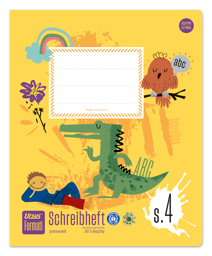 Die hochwertigen URSUS Formati Schreibhefte werden in Österreich hergestellt und sind mit dem Österr eichischen Umweltzeichen und dem Blauen Engel ausgezeichnet. Dieses Quart-Heft hat 20 Blatt, ist lin iert und erleichtert dank der Zweiteilung der Schreibzeile samt dickem Grundlinienstrich das Formuli eren und Gestalten von Sätzen. Die Zwischenräume sind zur besseren Übersicht farbig hinterlegt.